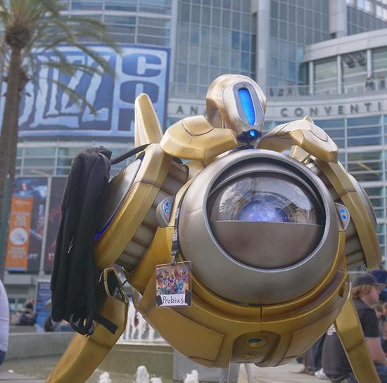 本次这个在暴雪嘉年华展馆前飞奔的可动真人比例探机,是来自西雅图的团队 Bill&Brittany Doran 所制作,他们喜爱类似于《星球大战》、《星际迷航》、《星际争霸》等等这样星际元素的电影游戏,并为其制作高端的道具与服装。