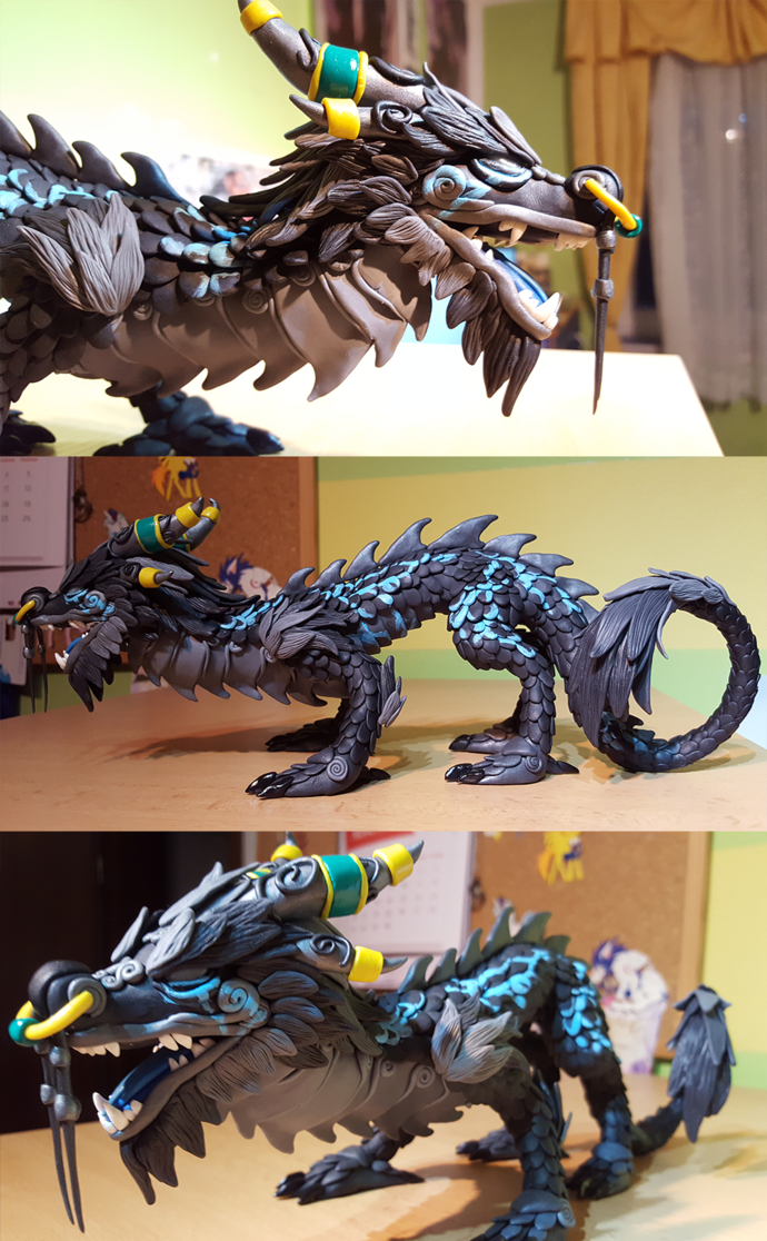 国外手工达人owlburger近期的软陶作品:德鲁伊神器变身形态月魂之羽、雷霆玛瑙云端祥龙、熊德、金色狮鹫。