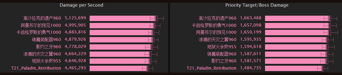 模拟模板采用了SIMC官方提供的惩戒T21模板,绿字配装略微奇怪,但是不影响饰品的模拟结果。