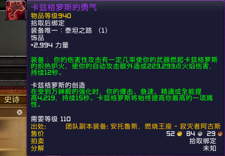 卡兹格罗斯的勇气为万神殿饰品,除随机外不论难度初始掉落为940,但是可以被尾王掉落的“万神殿的祝福”+5装等直至1000,这里直接取了1000装等。