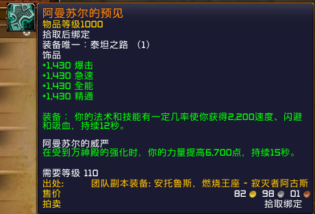 王座饰品取M版本的960装等,卡兹格罗斯的勇气和阿曼苏尔的预见为1000装等。