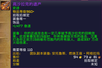 无论单体还是AOE,高沙拉克的遗产表现都异常的优异,遗产的伤害是100%暴击的[感谢楼下补充]。
