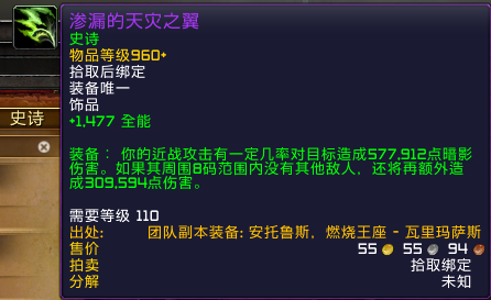 模拟采用模拟饰品+955不稳定的奥术水晶作为搭配,用955地狱火余烬作为参照组,方便大家在当前的饰品天梯图上定位比较