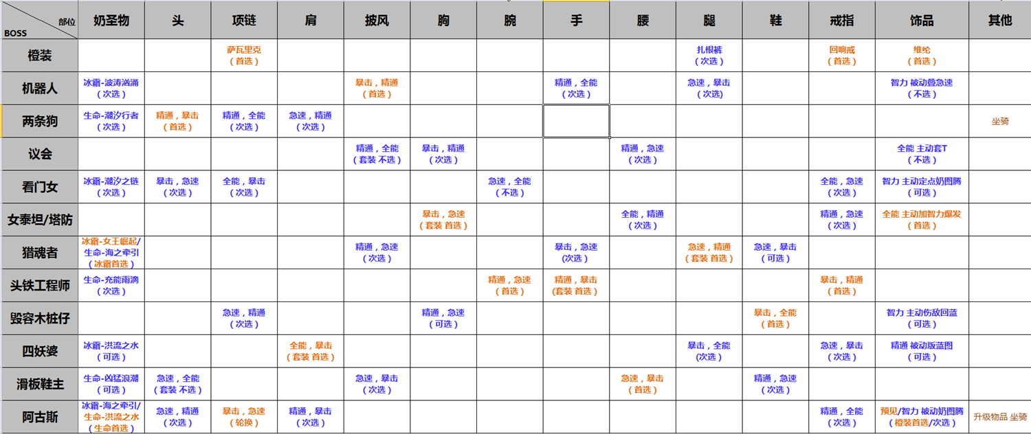 除了套装四部位,2个不错的圣物和阿古斯的饰品,别的散件掉落都很鸡肋,阿古斯的项链工程师的戒指四女巫的饰品可以关注。