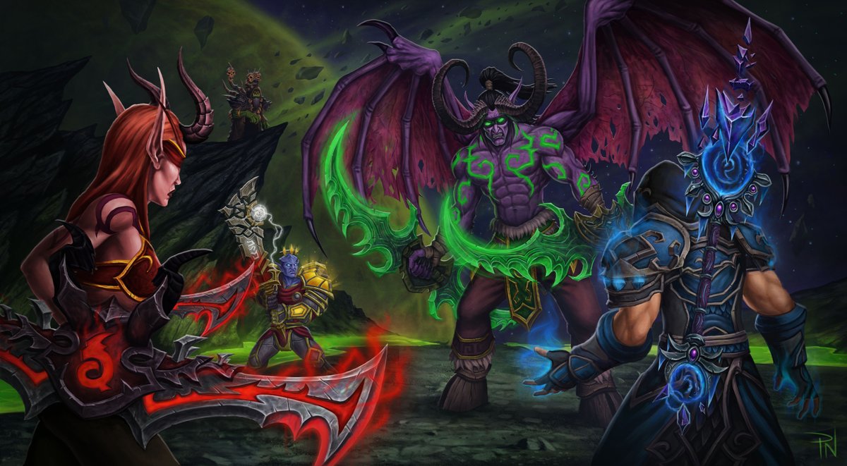 魔兽官推分享的同人画作:“从来就没有什么救世主,只有,靠我们自己”。