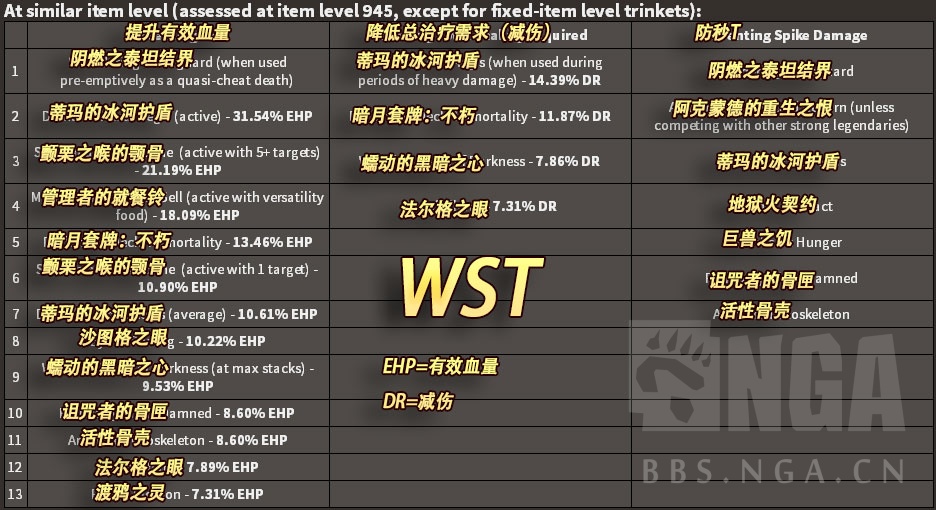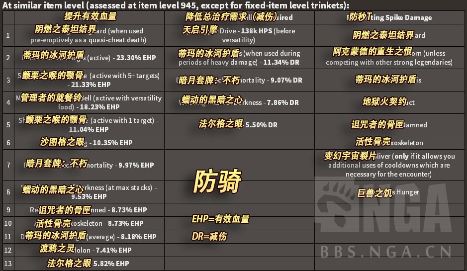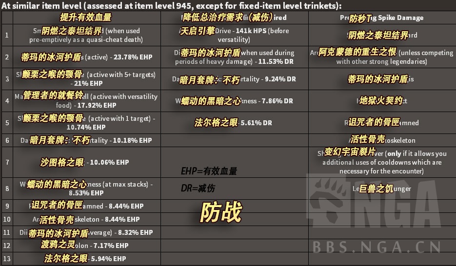 图片都分上下两张,上面的是饰品都在945装等进行比较,下面的是饰品在比较容易获得的装等下进行比较。