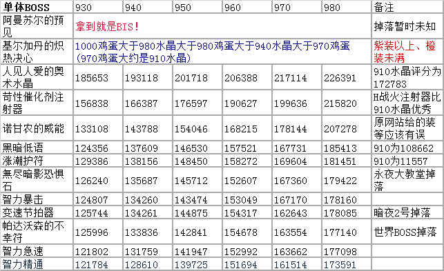 8。 模拟数据为较长时间BOSS战斗模拟,其余未在表中罗列的饰品在长时间单体BOSS战中表现不佳。