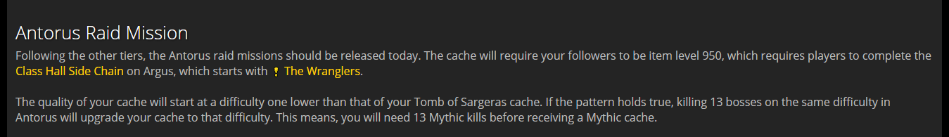 本周第一次刷新,箱子品质比萨墓低一级,如果你的萨墓任务刷的是史诗难度的箱子,那么本周会直接刷新英雄难度燃烧王座的箱子,以此类推。