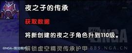 举例:110级的血精灵,转到夜之子,不能获得。109级的血精灵转到夜之子,升到110级,不能获得。50级血精灵转到夜之子升到110级,不能获得。