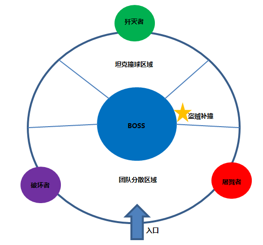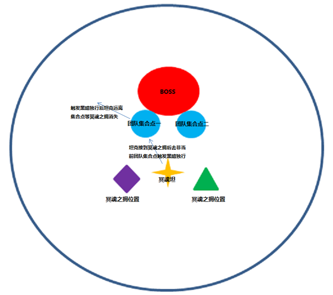 团队抱团在集合点,每次黑暗裂隙后移动到另一点;每次冥魂之拥3T在星星位置接应