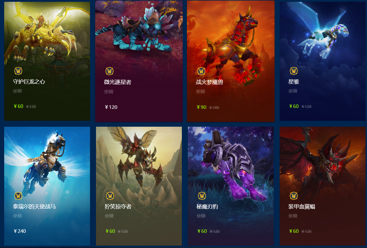 暴雪今天开放了一个圣诞假日促销活动,魔兽的坐骑、小宠物、幻化头盔变为50%折扣,半价出售。以往一只坐骑的价格,现在可以买两只,不过部分物品(如泰瑞尔的天使战马)还是原价。