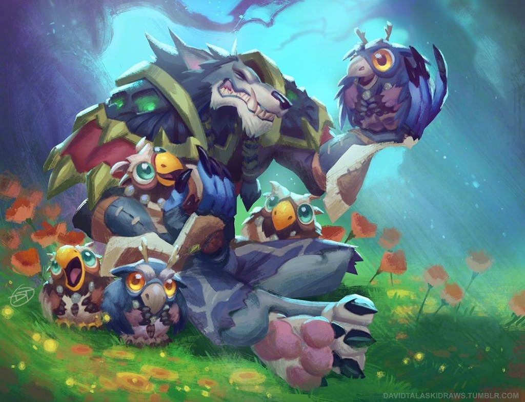 魔兽同人画:凶猛“狼外婆” 2018-01-09 15:40 新浪游戏 0 国外画师David Talaski绘制了自己的角色同人图,图中,自己是一只凶猛的狼人,獠牙甚是可怖。但是周围却围了一群不害怕的咕咕,看到如此萌的咕咕,狼人笑的眼睛都眯起来了。果然,论萌谁能比的上我大咕咕!