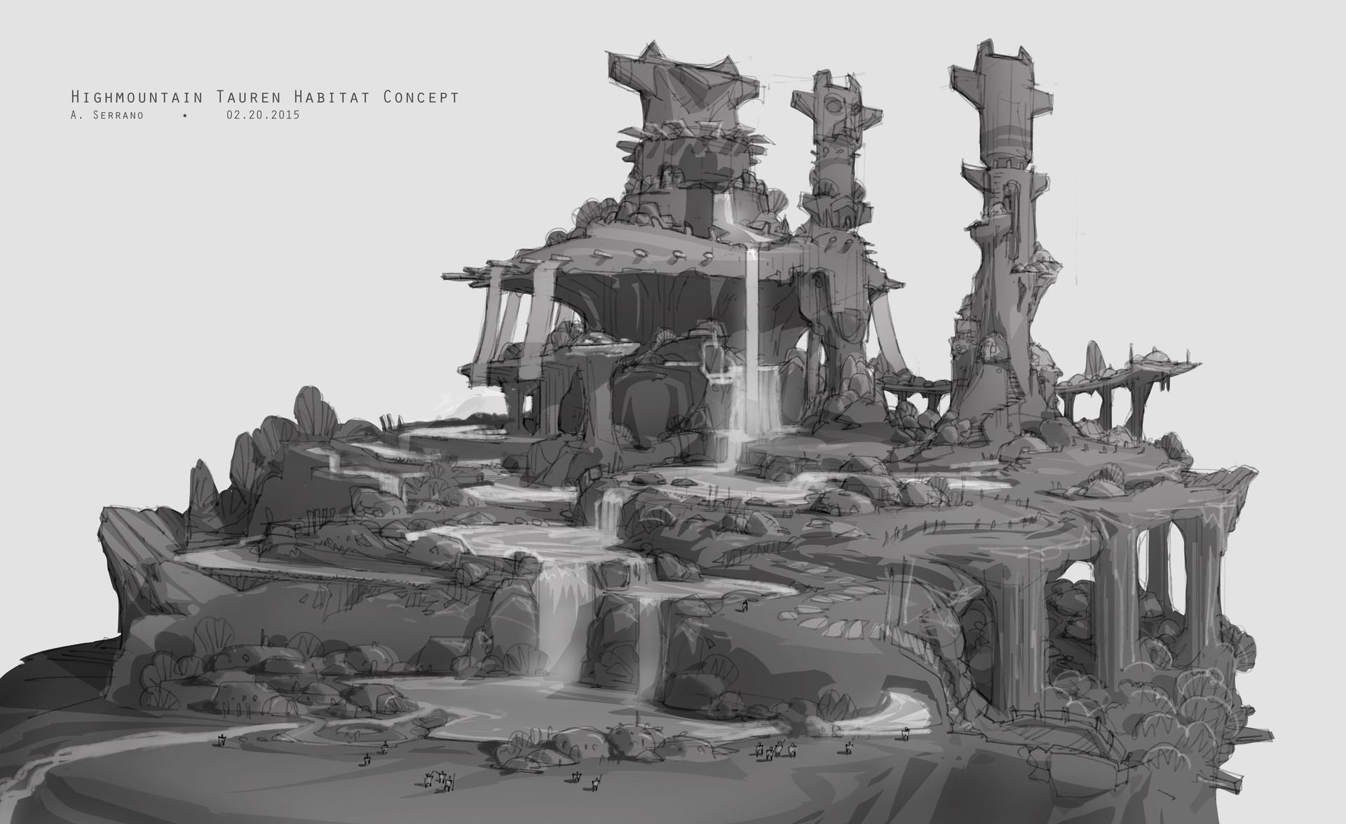国外设计师Armand Serrano最近放出了他在2015年为魔兽绘制的至高岭早期视觉设计图。或许是已经到了军团版本末期,这批视觉设计图未被暴雪采用,现在才得以解禁。