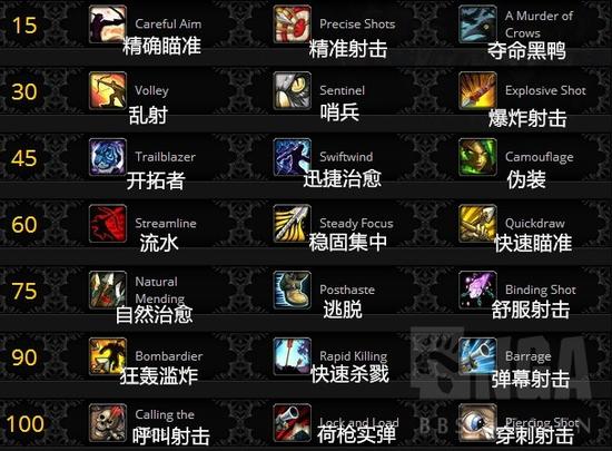 精准射击:瞄准射击激活猎人印记时,你的所有技能的消耗降低50%,持续x秒。15级射击专精天赋。
