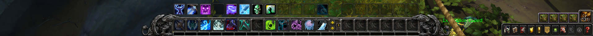当勾选“左下动作条”和“右下动作条”时,只增加了六个空位,而不是之前的十个。此外,游戏菜单上的按钮,比如角色信息,技能书,天赋以及背包等等,都被移动到了屏幕右下方。
