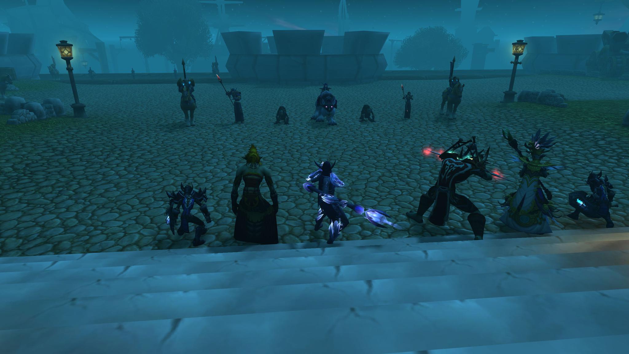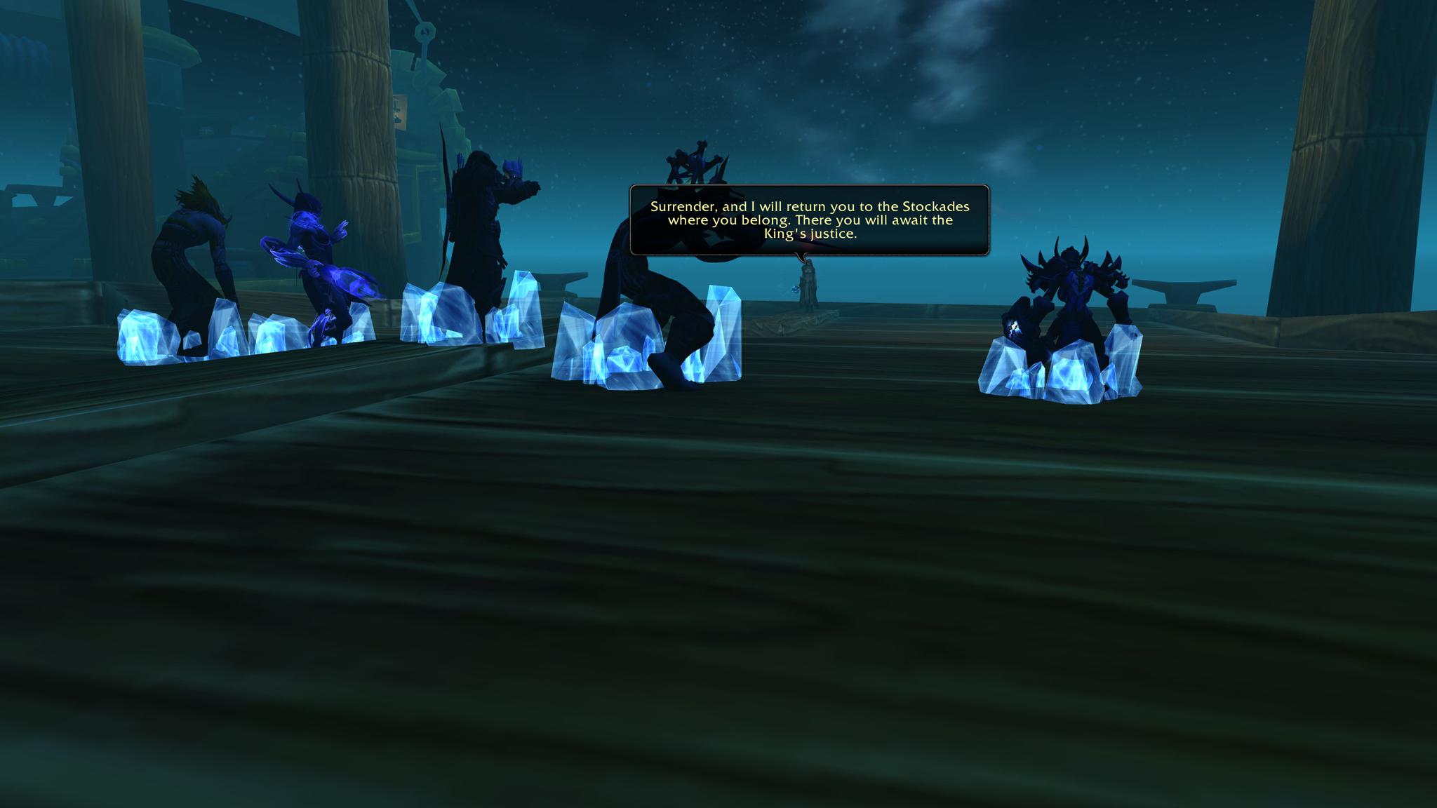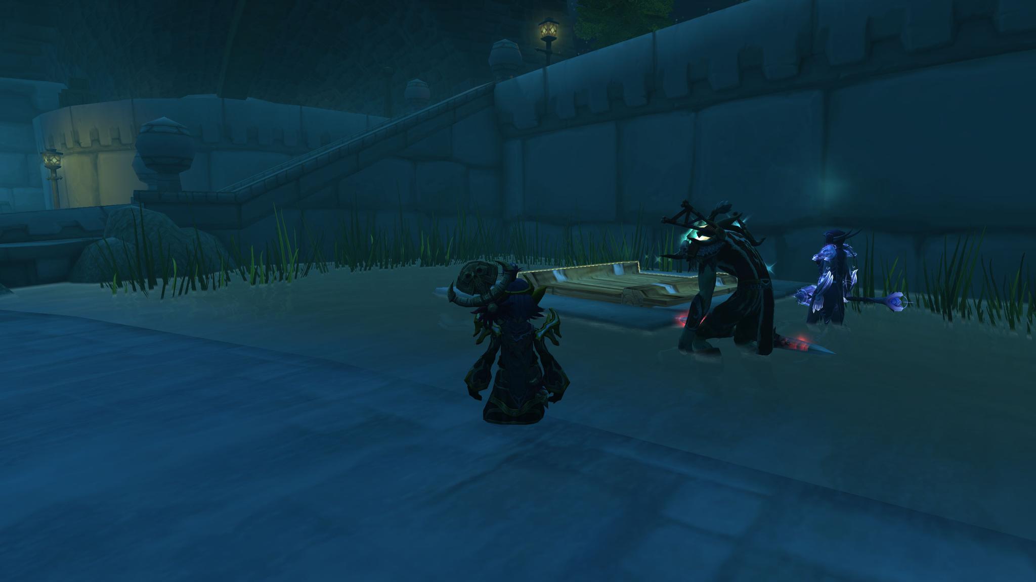 众人打碎冰墙,赶到码头的下一层。然而一支由暗夜精灵女祭司带领的部队拦住了去路。