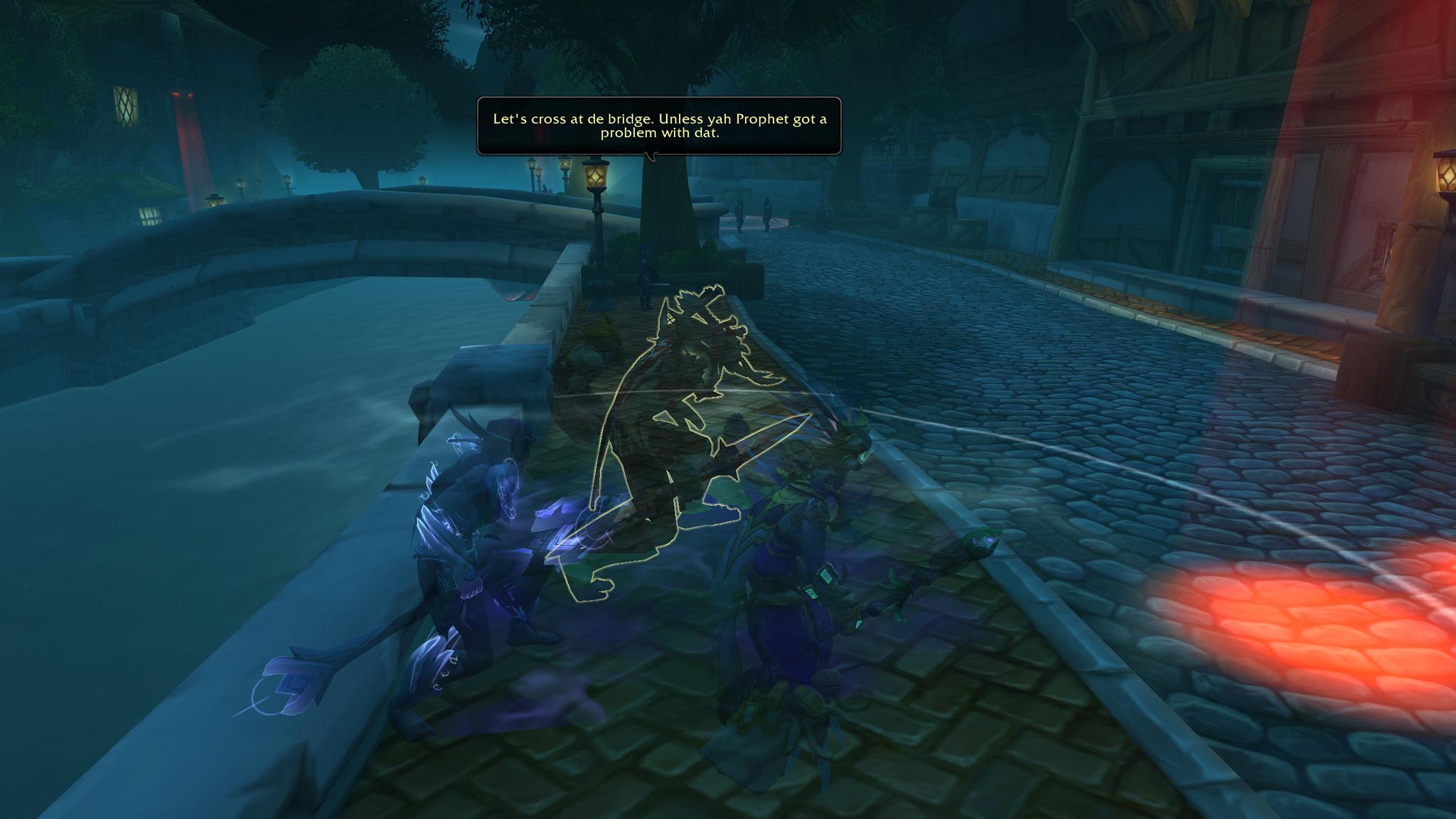 在最后的一段路上,各种各样的联盟士兵挡住了去路,他们的成员有人类、矮人、侏儒、精灵、甚至德莱尼。略过不表。