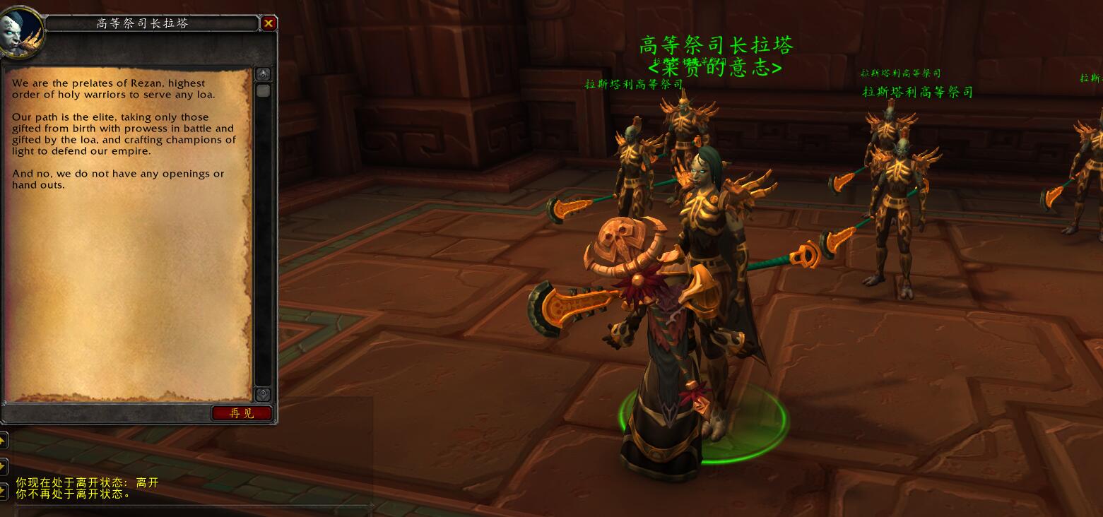 以上消息翻译自德国魔兽网站,但我自己开着已经完成祖达萨任务线的角色跑去看时,却发现了一段不一样的对话。