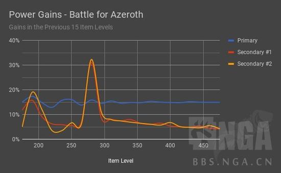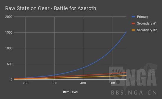 2、不过绿字属性的变化可就大了。7.0早期团本装备(压缩后)上的绿字受取整的影响更大,曲线也更狂野。从H萨墓开始,直到280橙装,绿字基本都是等比成长的。再之后,即8.0中获取的装备,绿字属性会迎来一次飞跃,15个装等提升了30%。当你继续从8.0的任务、五人本和团本中提升装等时,一开始每15装等大概会提升9%的绿字,然后逐渐下降。换句话说,你的绿字属性将随着装等线性增长,每提升一点装等,将提升固定的绿字数值。具体来说,在8.0里,胸甲每提升20装等能增加1%的暴击,不论你现有装等多少。而在7.0中,你装等越高,提升20装等带来的暴击就越多。
