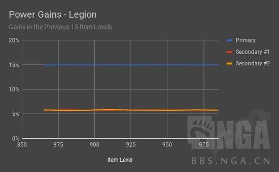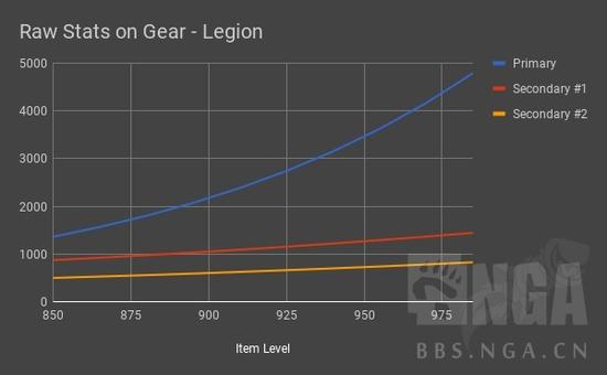 目前,属性是随装等等比增长的。举个例子,装等每增加15,主属性增加15%,副属性增加6%。这种算法导致了属性的指数膨胀,950装备提升10%导致的数值增加要远比900装备爆炸。