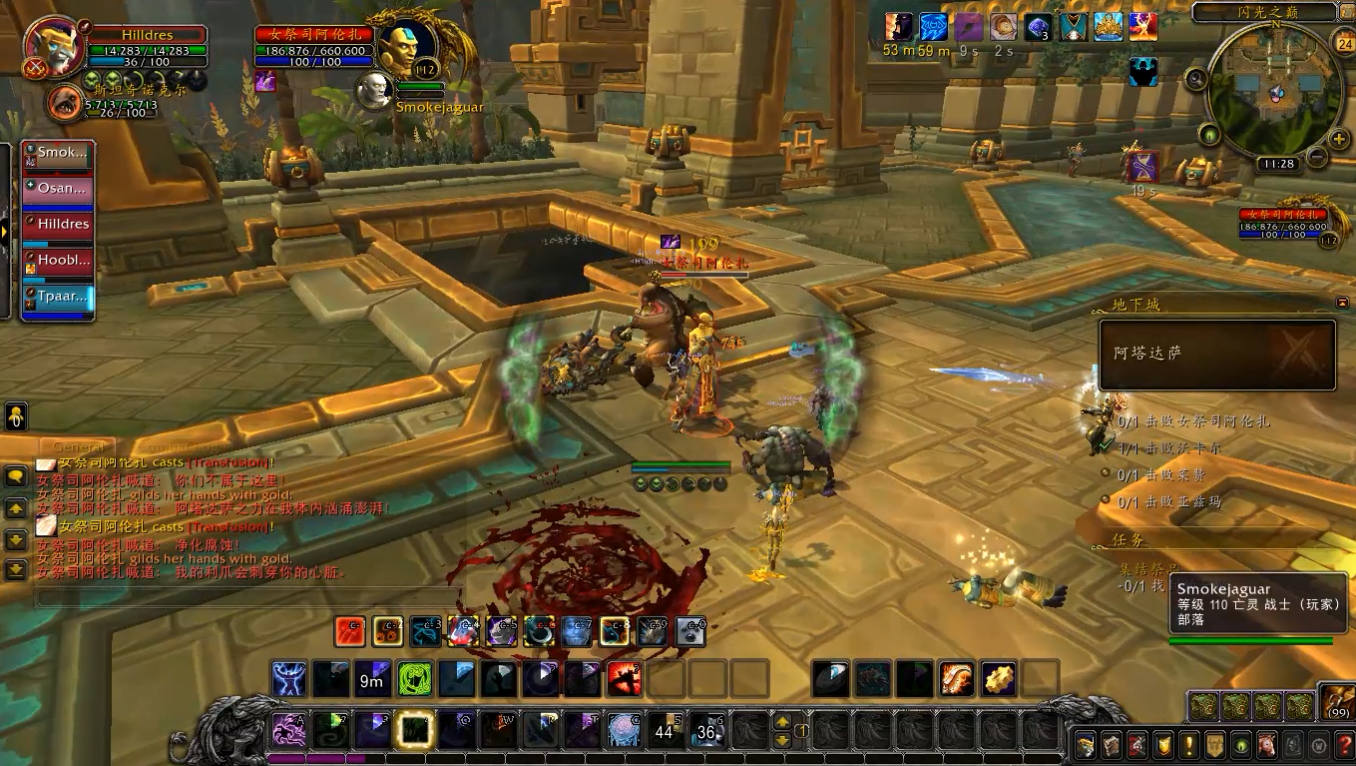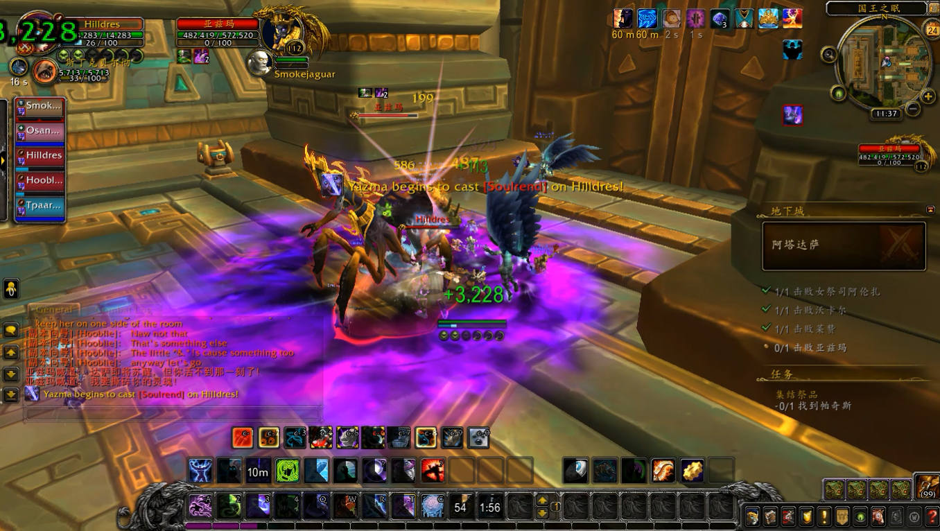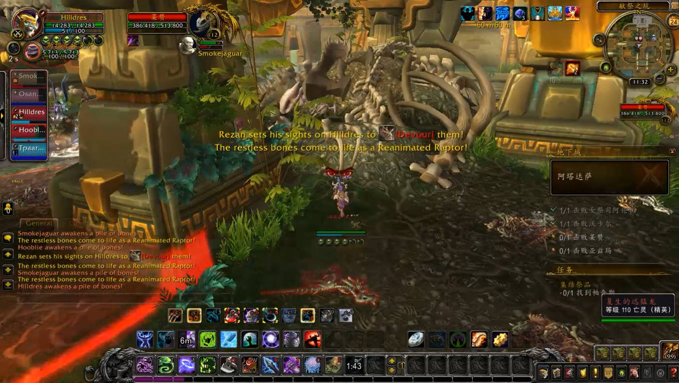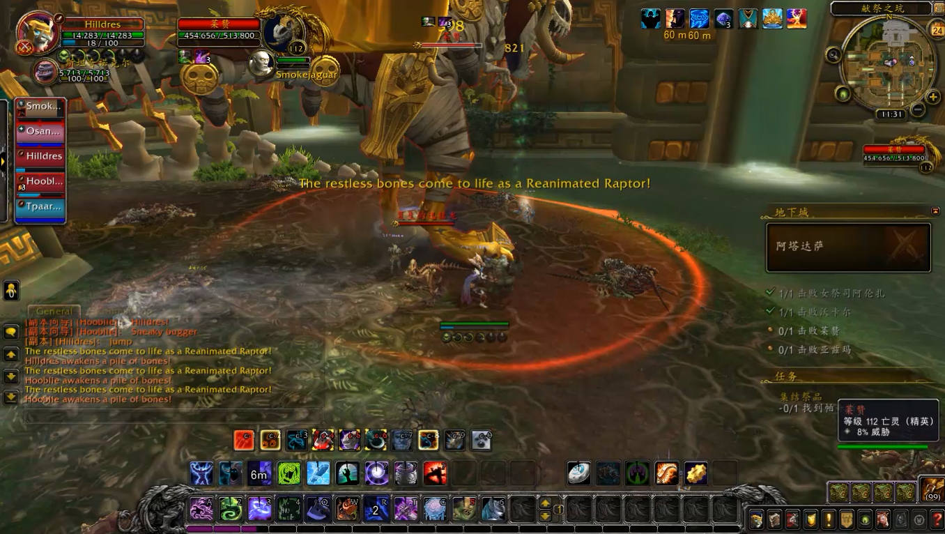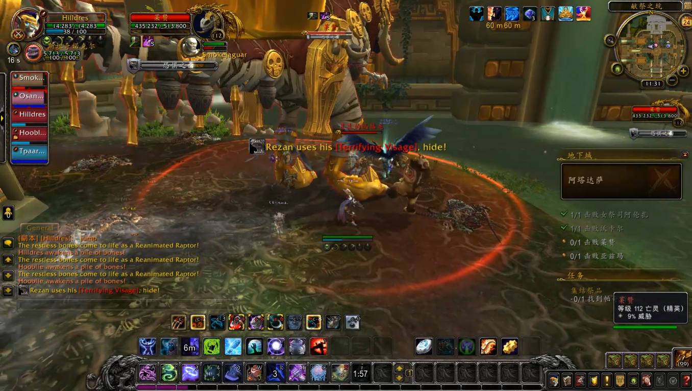 副本内小怪强度都不大,但是有两种需要特别注意,一个是啸天龙,会读条恐惧,必须打断,否则很容易就会add;另一种是巨魔卫士堆里的祖尔的持盾卫士,会读条魂能壁垒,范围内的友方单位减伤50%,所以需要把其他怪拉出壁垒范围或者将卫士单独拉开。