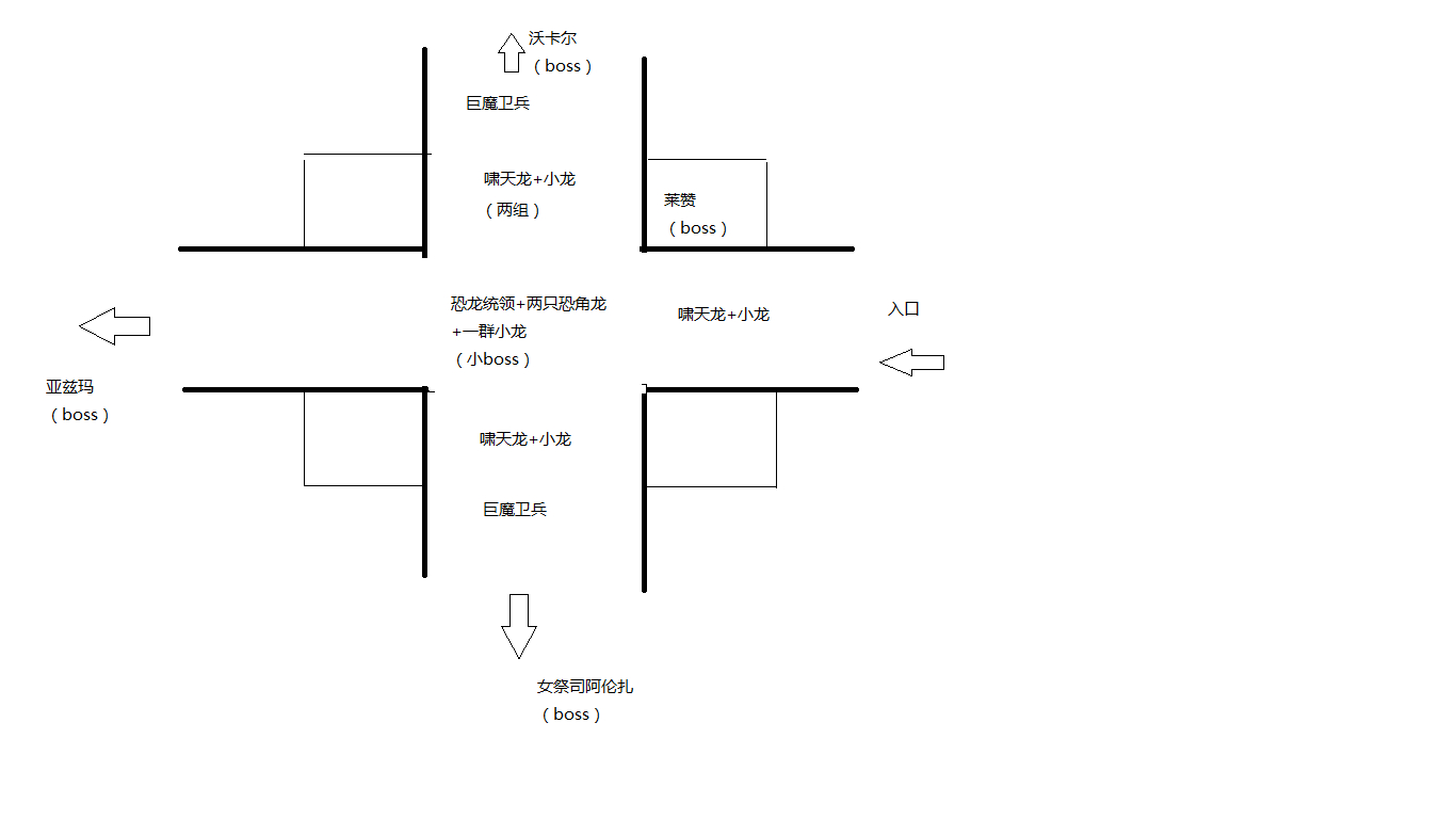 副本地图十分简单,因游戏内地图尚未实装,故作以下示意图: