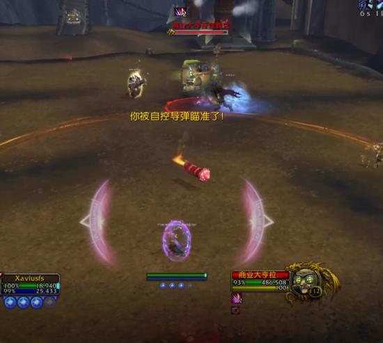 被自控导弹瞄准的玩家应该讲导弹引导出人群然后触碰它使导弹爆炸,导弹在命中目标或者10S之后会爆炸,对目标造成1.2W点火焰伤害并对导弹周围20码范围的玩家每两秒造成2500点火焰伤害,持续6秒。爆炸范围如图下红圈所示。