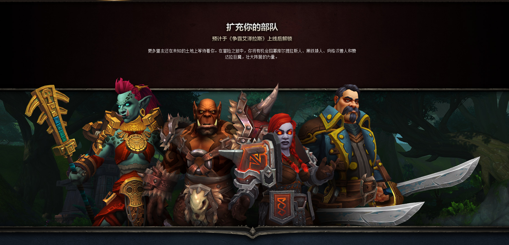 魔兽官网的争霸艾泽拉斯资料片同盟种族介绍页已经更新了8.0新的四个同盟种族形象,其中库尔提拉斯人的穿着暗示了库尔提拉斯人的传承种族护甲。