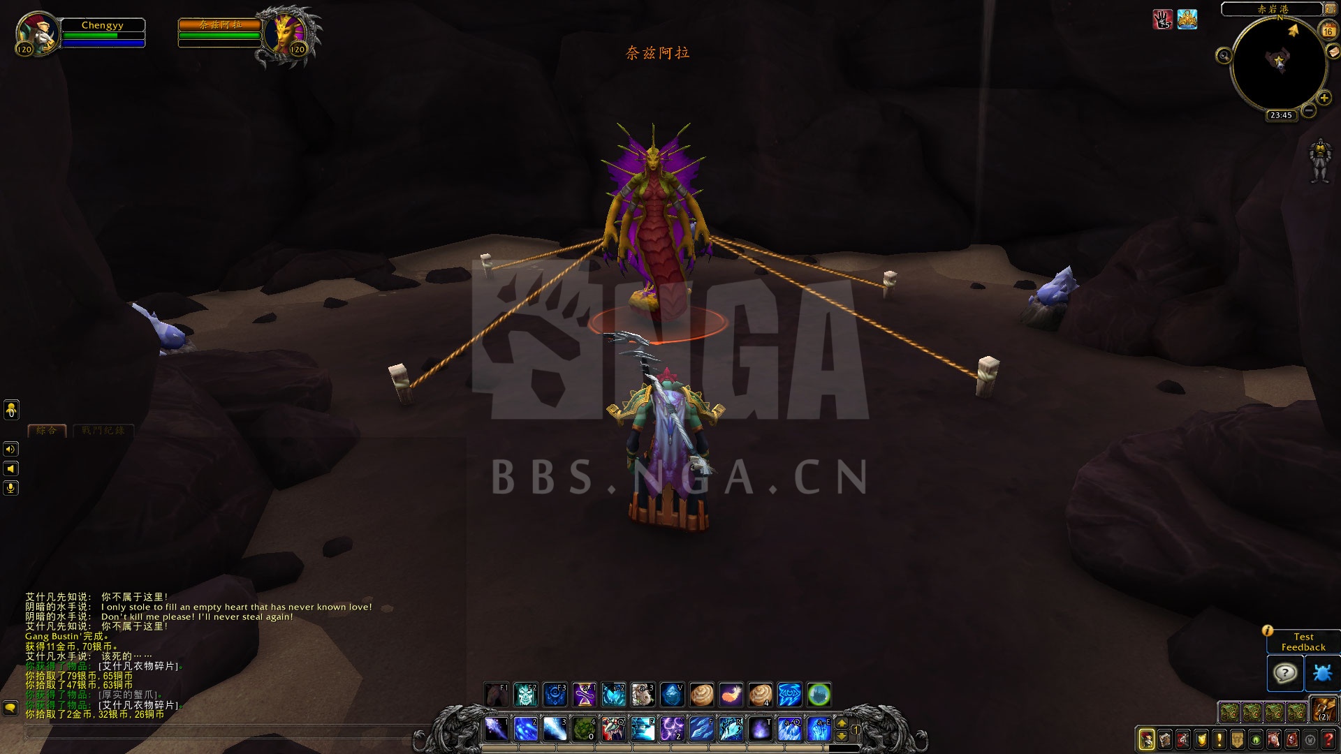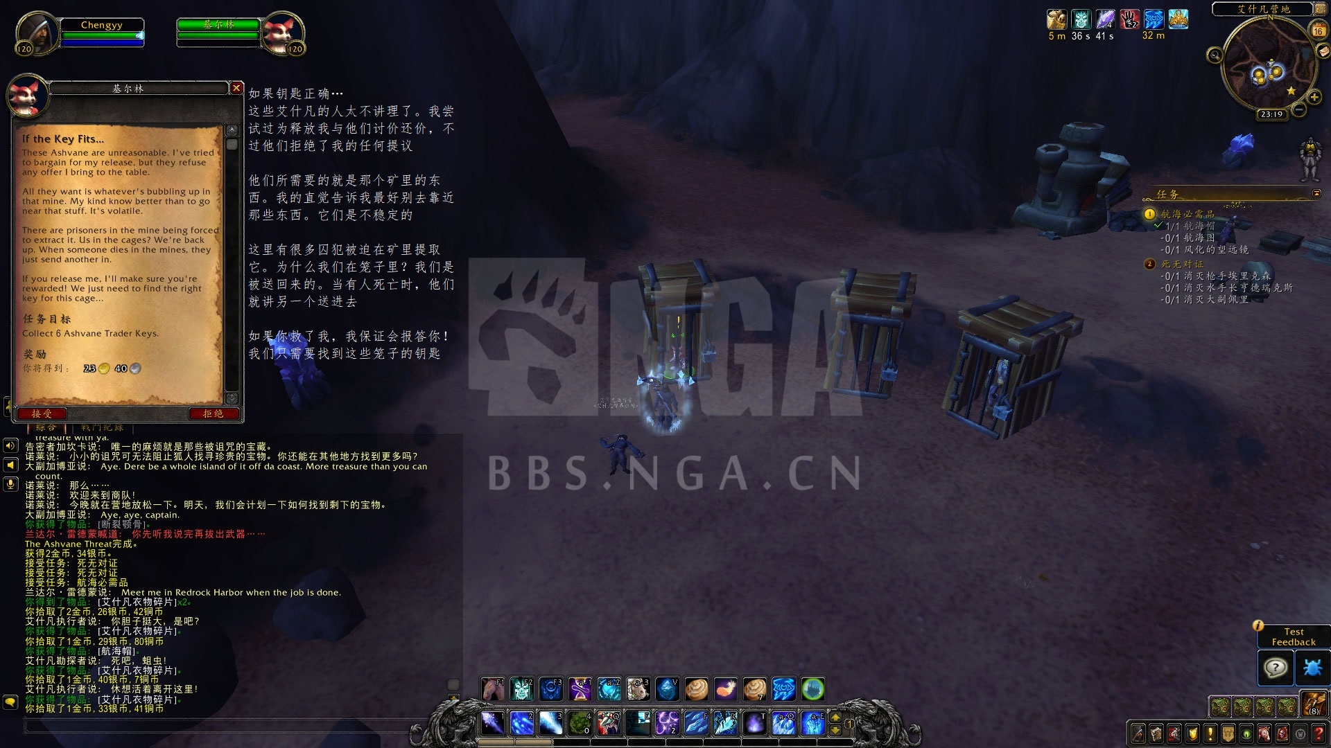 同时我在这发现了一个狐人俘虏,他告诉我了艾什凡的暴行,并请求我救他,我在周围搜寻到了一些钥匙,然而都不能打开笼子。