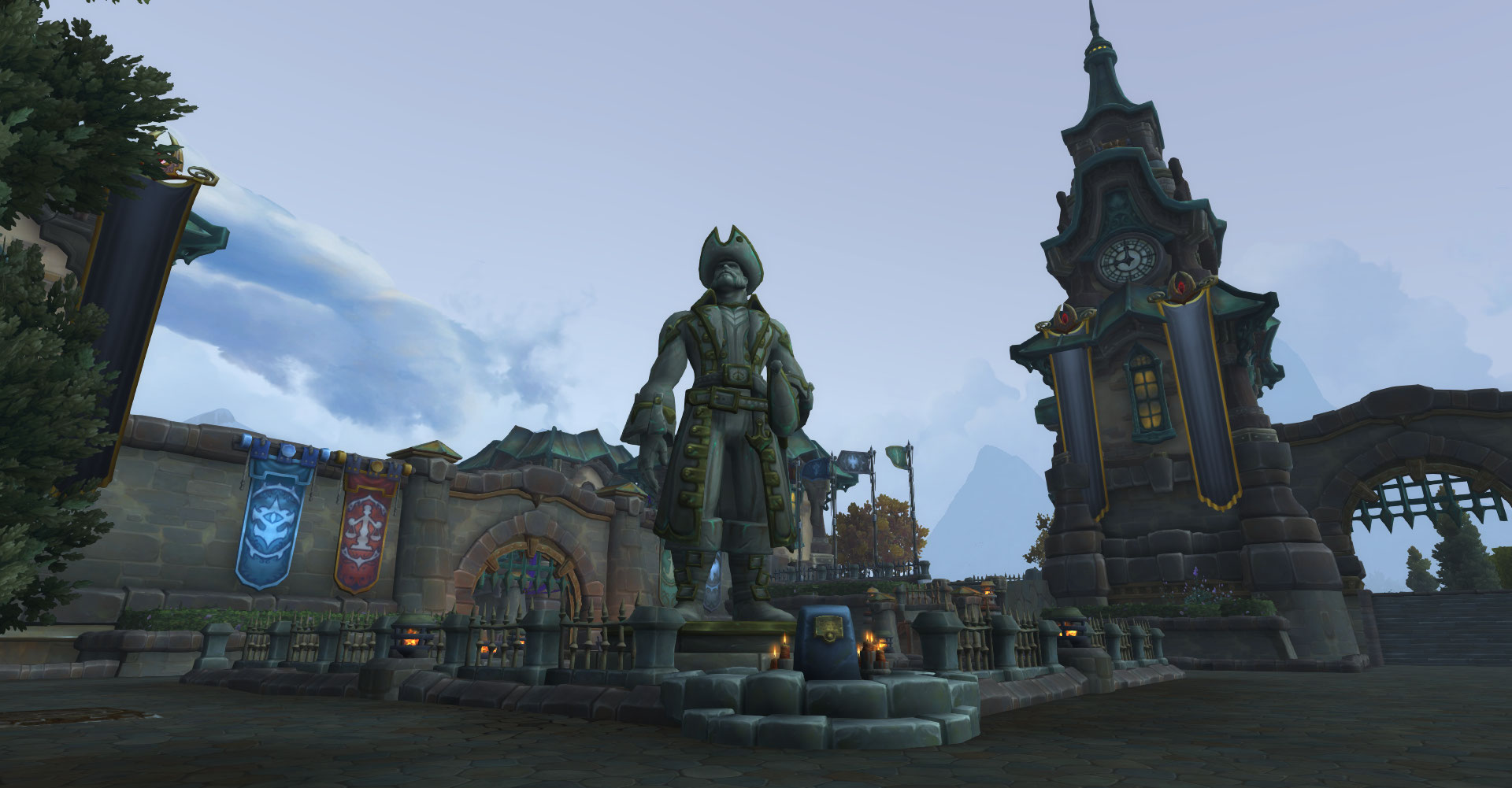 在测试服最新的build中,库尔提拉斯主城伯拉勒斯更新了旗帜,推测上图的旗帜从左到右依次分别为斯托颂家族、艾什凡家族、普罗德摩尔家族和维克斯特家族。