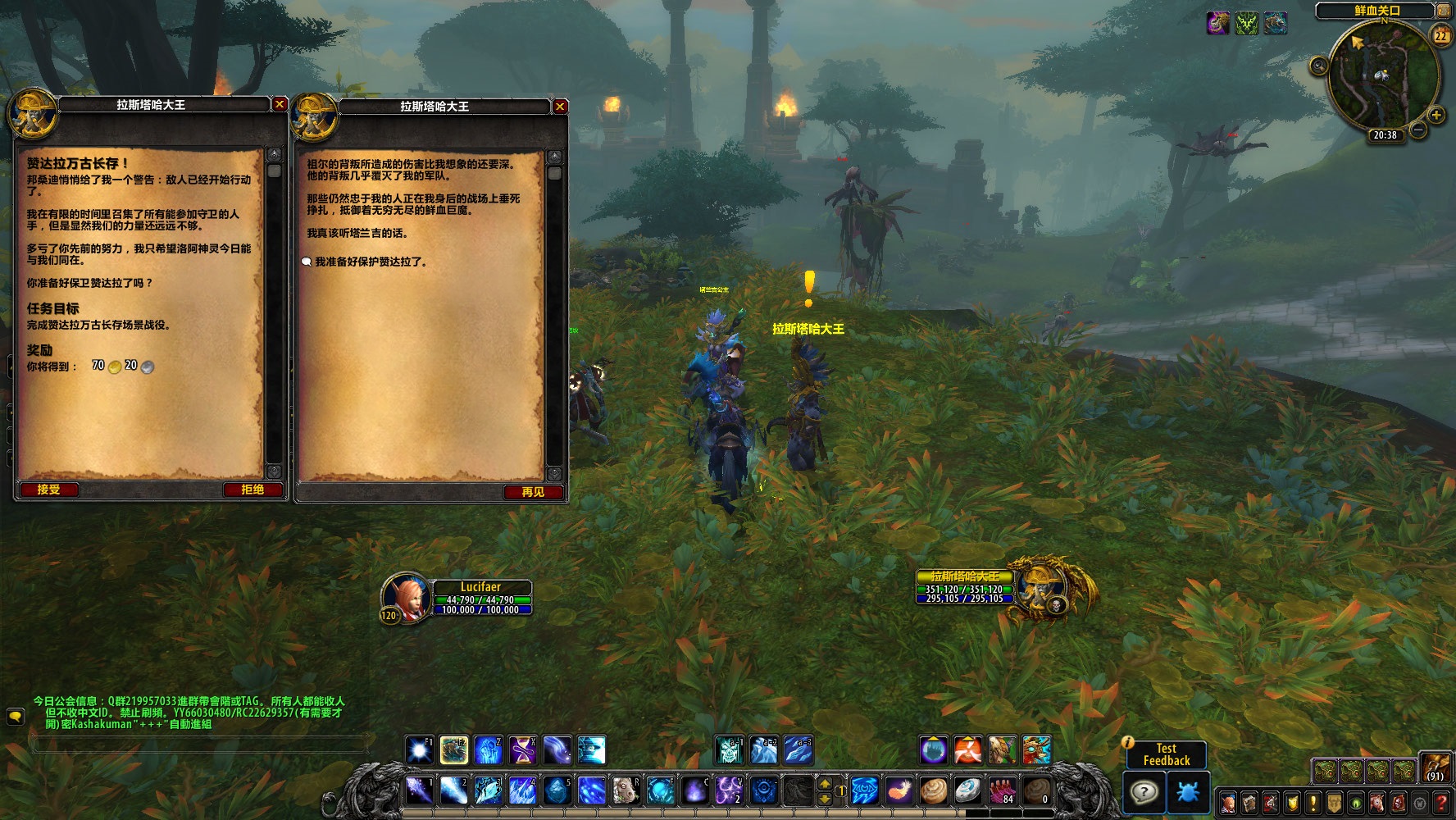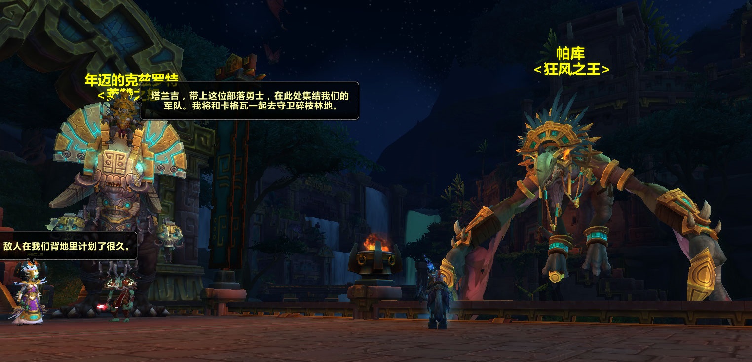 拉斯塔哈大王:塔兰吉,带上这位部落勇士,在此处集结我们的军队。我将和卡格瓦一起去守卫碎枝林地。