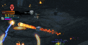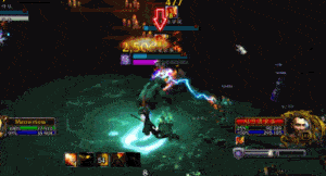 一个紫球与玩家有条紫线会追你,撞上会受到伤害并昏迷4秒,注意别被追到。