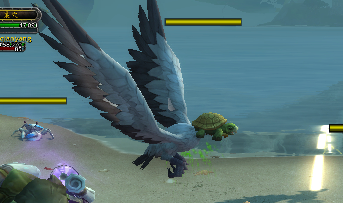 鸟会把小海龟叼走,螃蟹会围攻小海龟,你需要做的是用你的1技能把鸟和螃蟹打掉,帮助小海龟安全走到海里。目前的任务目标是15个小海龟,爬的很慢……螃蟹和鸟碰一下就死……要做很久。