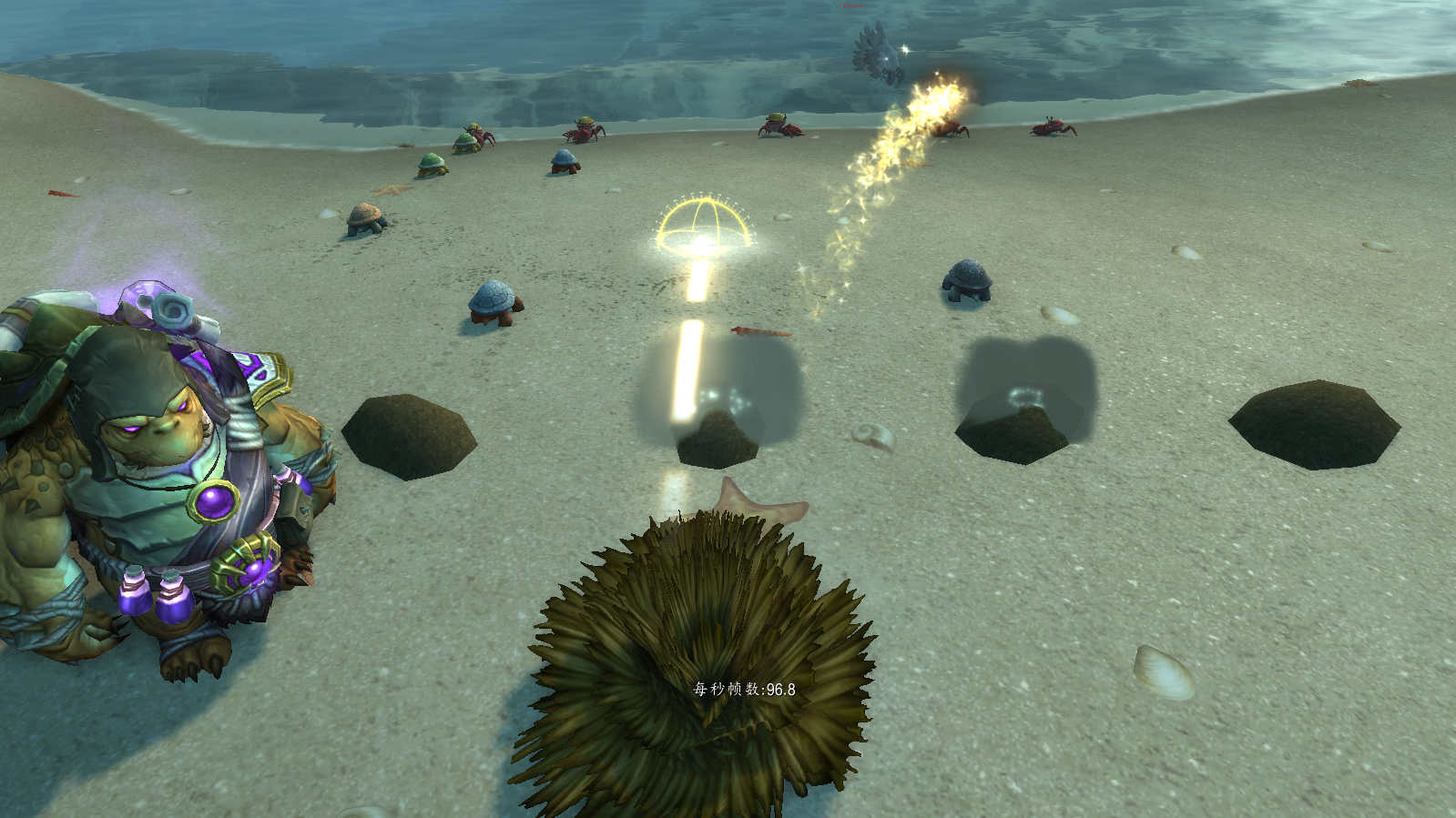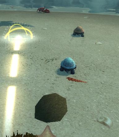 任务开始后,地上的4个小土堆会一直刷新小乌龟往海里慢慢爬:
