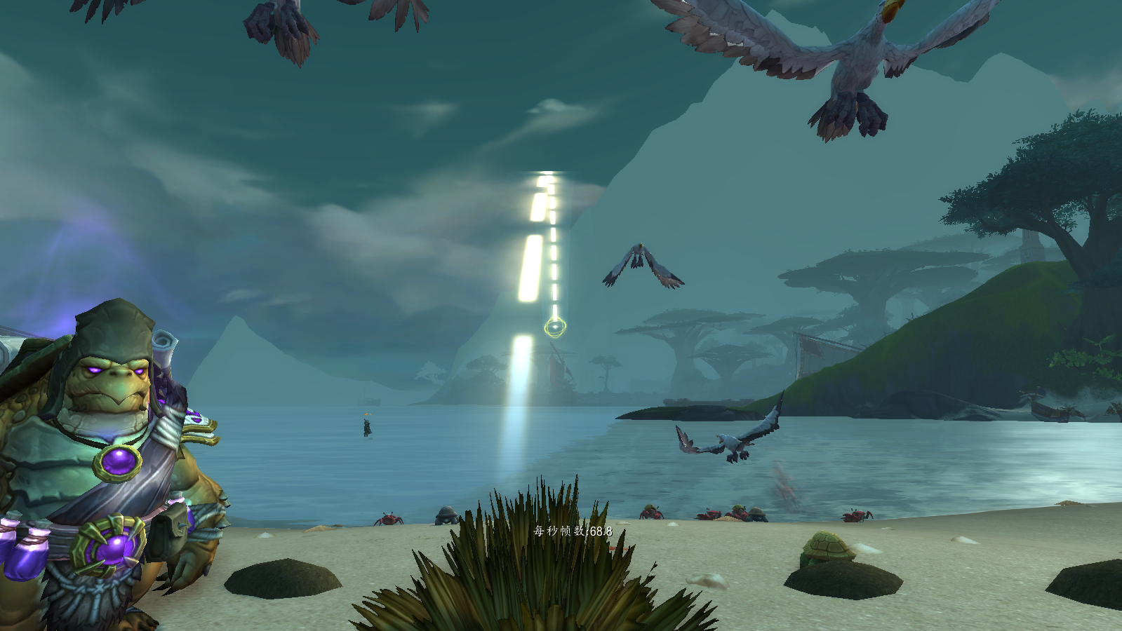 同时,天上会刷新鸟,地上会刷新螃蟹。如下: