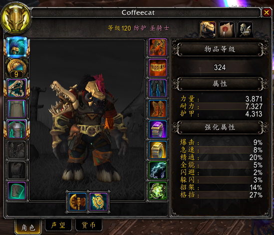 就目前的机制来看,在BFA版本中,防骑不会像军团再临版本中依靠盾击就能达到高额免伤,而是需要配合高格挡机制,保证在常态下尽可能的减免伤害,而这也是防骑目前最为尴尬的一点,防骑的格挡率与战坦不同,只能通过精通来提升,并且存在递减,如图,再考虑到新精通所带来的可怜的全额免伤,在下版本,对于属性的规划可能会成为各位大领主的重中之重。