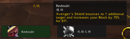 复仇者之盾可以弹射额外一个目标,并在8秒内提高你75%的格挡值。防护骑士15级天赋,代替奉献之锤。