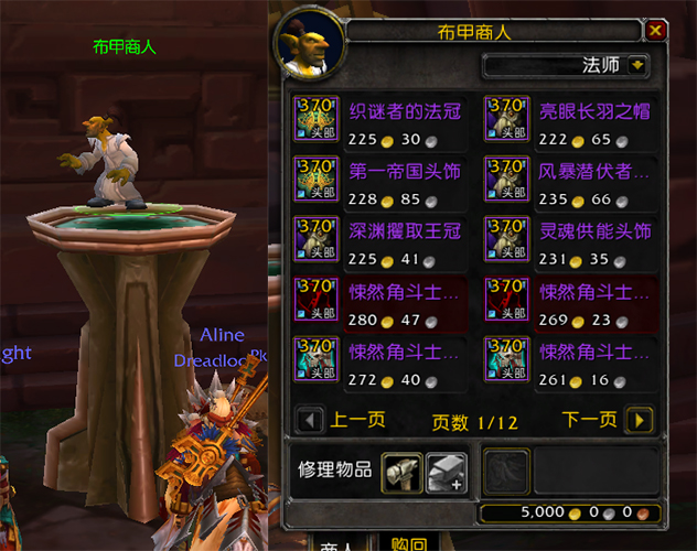 建号角色出生地即有多个出售370装备等级的NPC供玩家选择购买,包括了所有甲种的所有部位的来自地下城、团队副本、任务、周常以及PVP的370等级装备,部分带有角斗士字样。