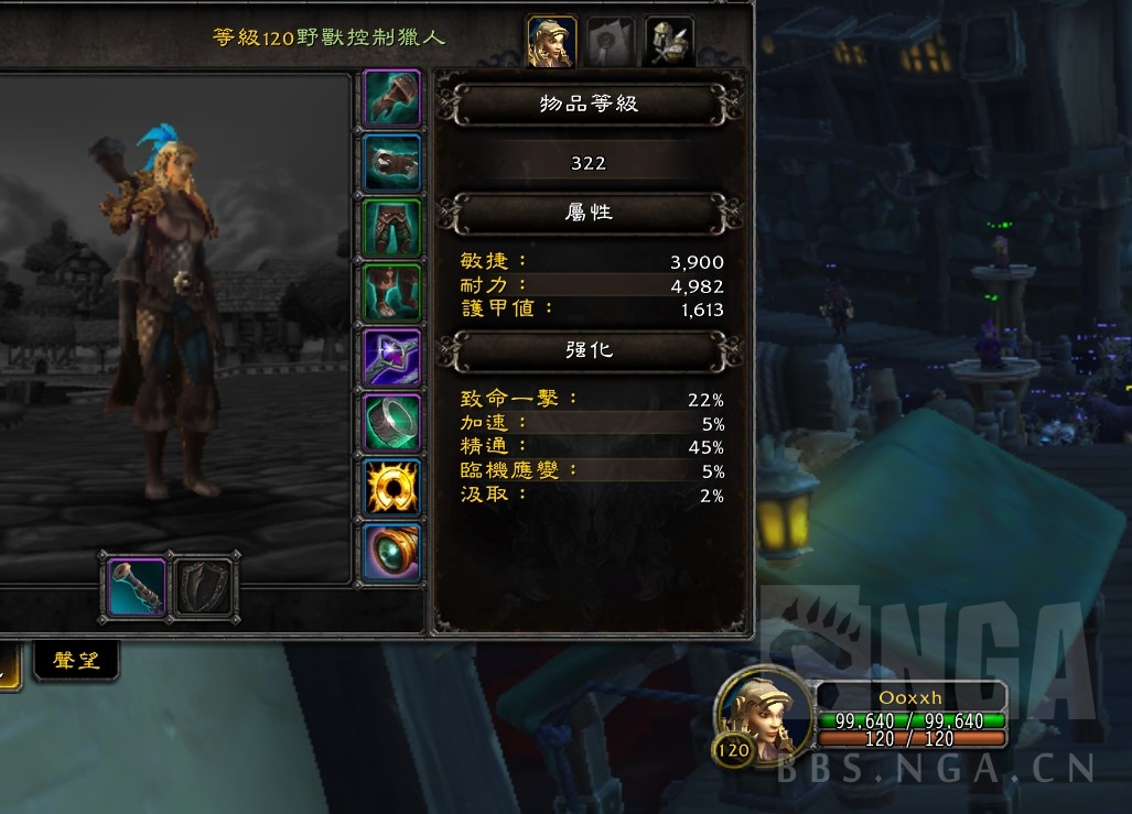 本次测试目的是为了测试场内是否和7.0一样存在PVP模板,因为只买了2件370的装备,其余的都是系统送的蓝装,所以装等不高,不要太在意装备属性,只需要关注场内外属性是否一致。