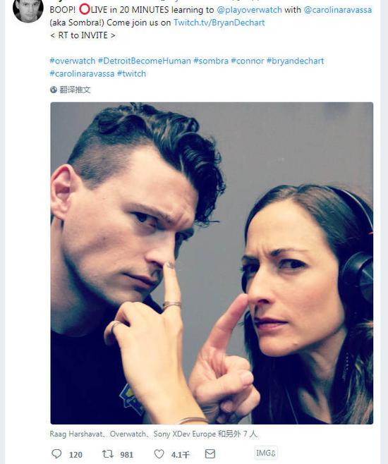 下图是《底特律·变人》的康纳(Bryan)和黑影声优小姐姐互相boop!