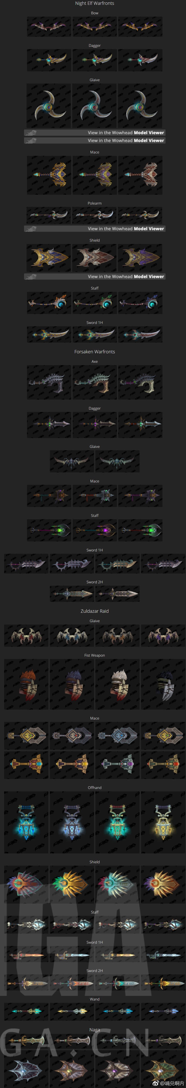 8.1补丁中新增的一大部分武器外观,暗夜精灵传统的月刃终于登场。