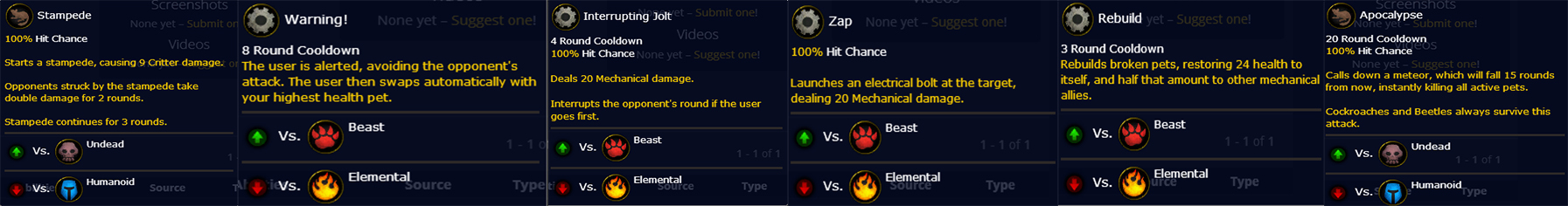 每个成就打开如下,都是用同一系的宠物打败15个驯兽师。