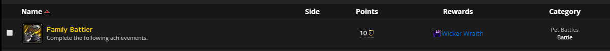 柳条幽灵:战斗之家成就(需用10类同系的队伍(每支队伍需为同一系,即对应10系)打败赞达拉和库尔提拉斯的15个驯兽师。)。德鲁斯瓦的怪异魔法已经引起了一些难以想象的生物出没。有些仍在蛰伏,有些已浮出暗影。