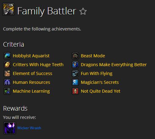 类似7.0的全谱系战神成就,8.1会有战神之家成就。需用10类同系的队伍(每支队伍需为同一系,即对应10系)打败赞达拉和库尔提拉斯的15个驯兽师。