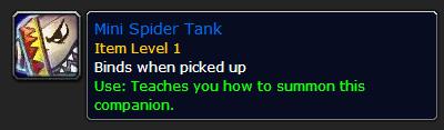 同时会有个商人Micro Zoox出现在诺莫瑞根副本旁边。他售卖“未打开的诺莫瑞根补给箱”和工程能做新宠物Mechantula设计图。