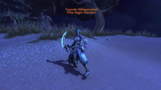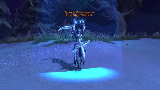 On The Night Warrior, we consult the Lost Wisp to find out why the moon went dark。 A cinematic is supposed to pop-up here, but it‘s currently disabled on the PTR。 It is safe to assume that we see a cinematic where Tyrande performs the ritual to become the Night Warrior。
