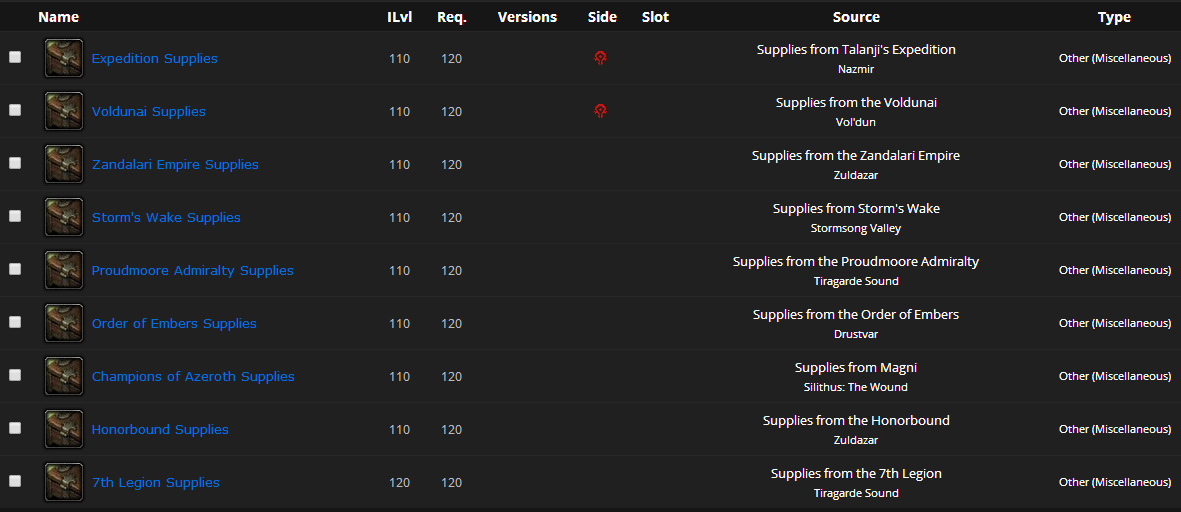 8.1加入了声望阵营补给奖励 2018-10-15 16:20 新浪游戏 0 在10月13日更新的PTR数据库里,看到已经更新了各大声望阵营的补给品。 但奖励品包括的范围仍不清楚。 作者:lvyun0214