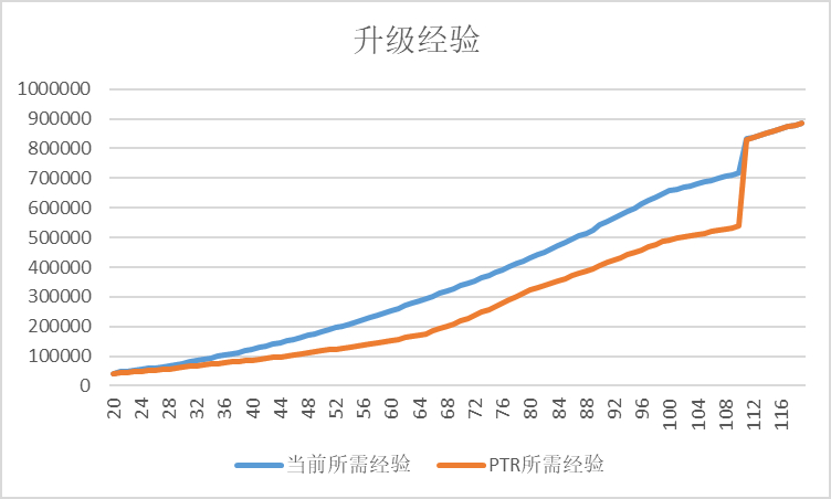 PTR服务器上,从20到120级所需的经验值已经下调,下调幅度最大为60级区间的40%左右。
