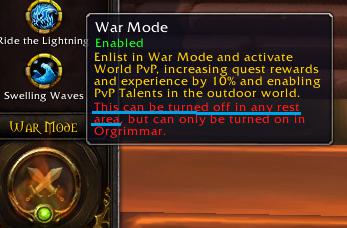 8.1测试服战争模式界面改变 2018-12-10 17:30 新浪游戏 0 在8.1测试服中,战争模式界面做出了相应改动。 从前战争模式只能在各阵营主城奥格瑞玛或暴风城打开和关闭,而现在界面修改为可以在其它休息区域关闭了。 作者:FiFiand1