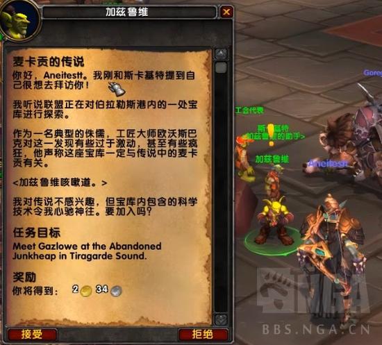 进了城镇后发现联盟的侏儒也在和艾拉兹敏王子对话说要加入,加兹鲁维就也凑了上去。麦卡贡的锈拴镇是联盟和部落一起的中立区域。